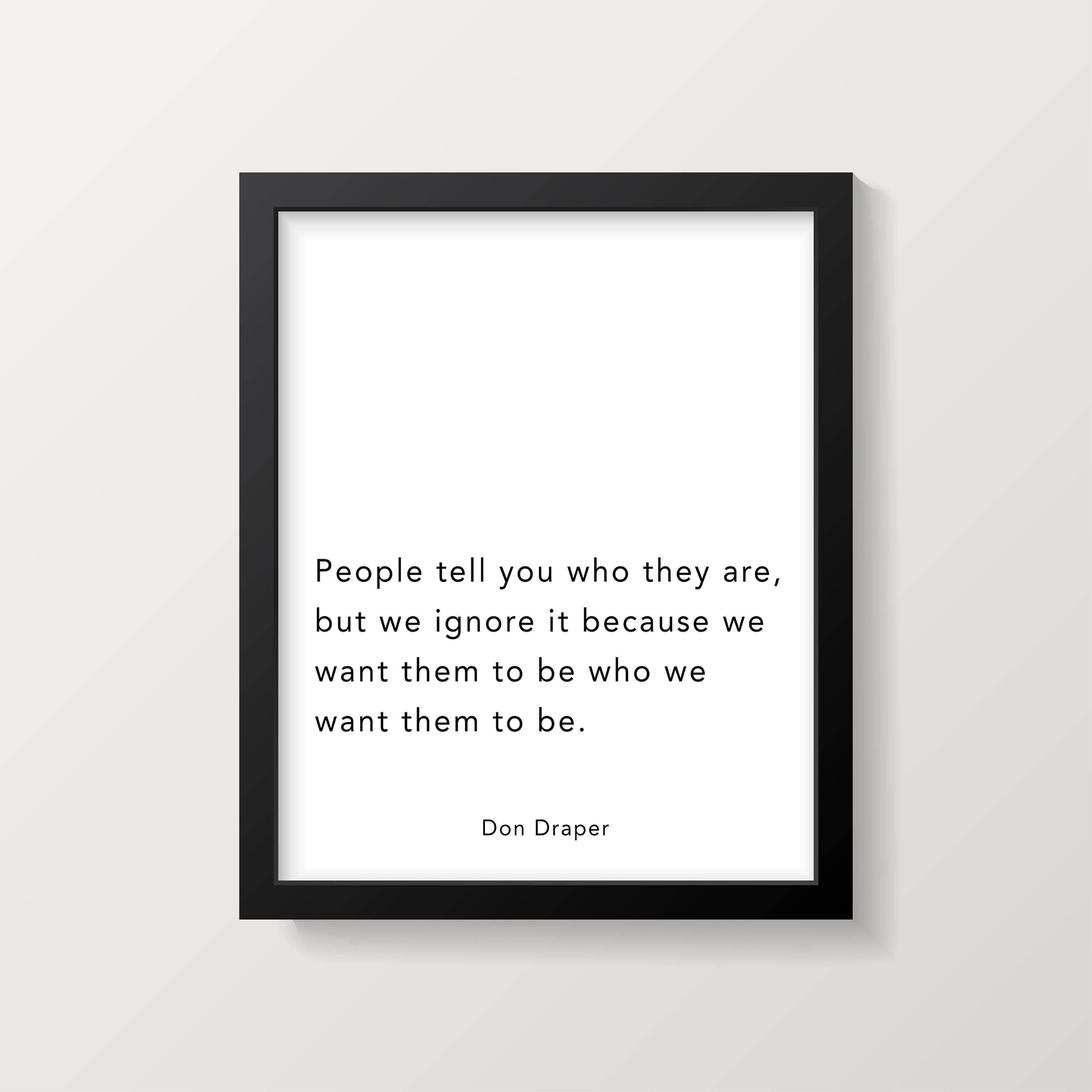 Season four, chinese wall 26 let's take it a little slower. Monday's motivational quote for students and recent graduates make it simple, but significant. —don draper, mad men character effective job hunting means advertising yourself properly. What a simple way to give yourself that boost you need, exactly when you need it. I told him to be himself. There are so many don draper quotes that can help you when you are tired of being in the same old rut, and all you need is a little push, a little inspiration, a smile on the face, change of mood, bring you out of the banality of life, make you laugh a little, or may even make you cry a bit, and these don draper quotes. Don draper might deal in print ads, billboards, and radio spots, but his ideas about how to advertise, sell, and market still resonate today.